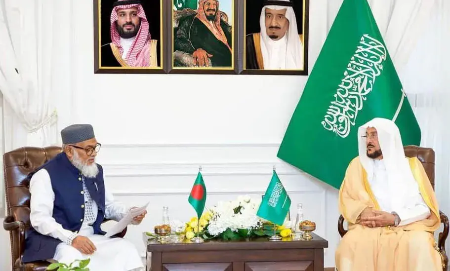 অন্যদিকে, বাংলাদেশের ধর্ম উপদেষ্টা ড. খালিদ হোসেন শেখ ড. আব্দুল লতিফ আল-শাইখের সঙ্গে সাক্ষাতে আনন্দ প্রকাশ করেন এবং ইসলাম ও মুসলমানদের সেবায় সৌদি আরবের নেতৃত্বমূলক ভূমিকার প্রশংসা করেন। তিনি পবিত্র দুই মসজিদ ও হজযাত্রীদের সেবায় সৌদি সরকারের বিশাল প্রচেষ্টারও উচ্চ প্রশংসা করেন এবং বিশ্বের বিভিন্ন স্থানে মধ্যপন্থা ও সহনশীলতার বার্তা ছড়িয়ে দেওয়ার তাদের প্রচেষ্টার প্রশংসা জানান।