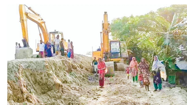 নিজস্ব প্রতিবেদক : ভোলার তজুমদ্দিনে পাউবোর খামখেয়ালিপনায় মেঘনা নদীর তীরে অপরিকল্পিত উপকূলীয় বেড়িবাঁধ নির্মাণের কারণে গৃহহীন হয়ে পড়েছে উপজেলার চাঁদপুর ইউনিয়নের ৫নং ওয়ার্ডের দালালকান্দি ও মাওলানাকান্দি গ্রামের ১০২ পরিবার। তারা এখন খোলা আকাশের নিচে বসবাস করছেন । এ ঘটনায় গতকাল শুক্রবার সকালে পানি উন্নয়ন বোর্ডের মাটি কাটা বন্ধ করে দিয়ে উপজেলা নির্বাহী অফিসারের কাছে দ্রুত ব্যবস্থা নেওয়ার আবেদন করেন ভুক্তভোগী পরিবারের সদস্যরা।