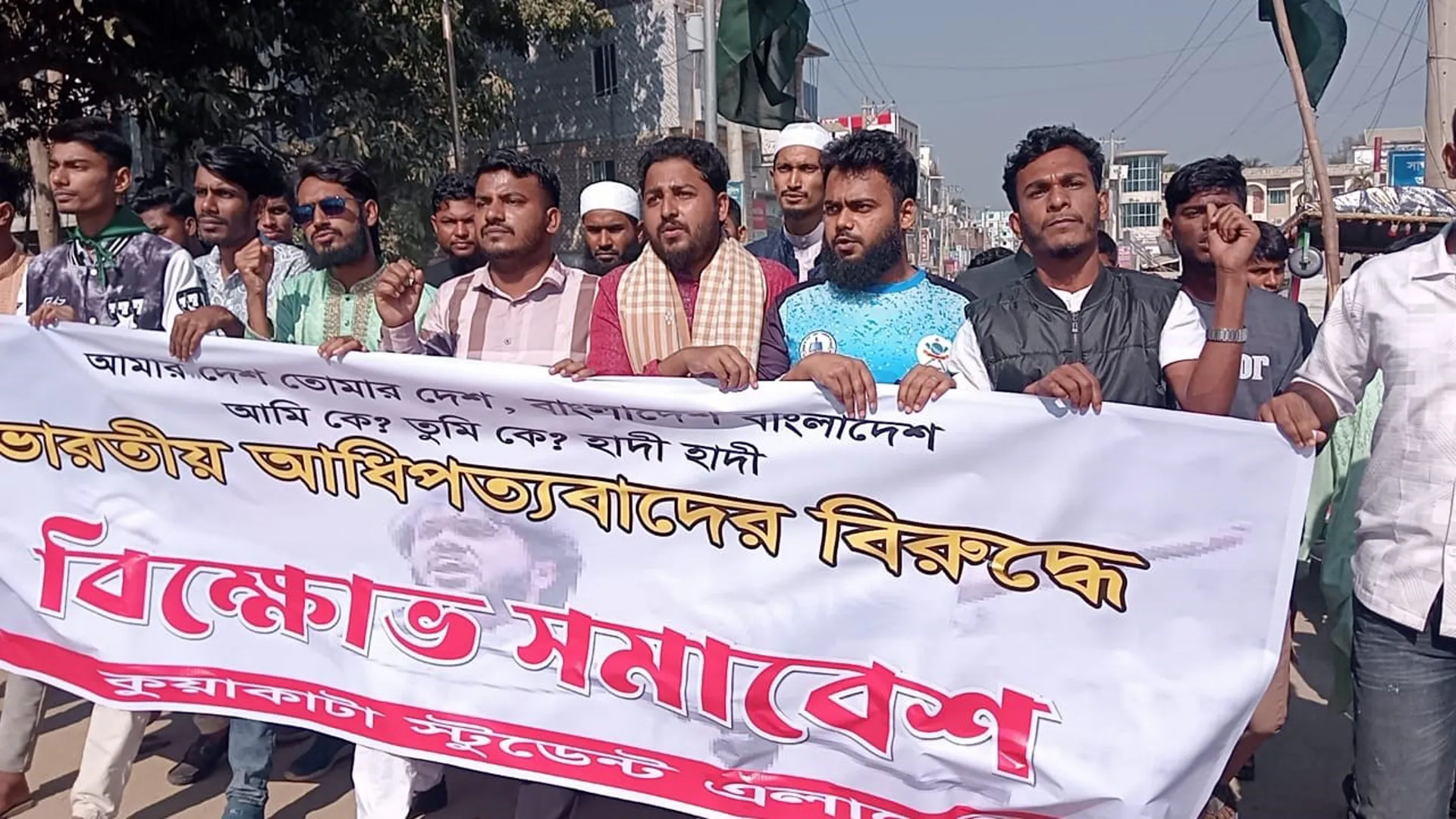 আমার দেশ তোমার দেশ, বাংলাদেশ বাংলাদেশ। আমি কে? তুমি কে? হাদী হাদী” এই স্লোগানে ভারতীয় আধিপত্যবাদের বিরুদ্ধে পটুয়াখালীর কুয়াকাটায় বিক্ষোভ সমাবেশ অনুষ্ঠিত হয়েছে।শুক্রবার (১৯ ডিসেম্বর) সকাল ১০টায় কুয়াকাটা প্রেসক্লাব চত্বরে কুয়াকাটা স্টুডেন্ট এলায়েন্সের ব্যানারে এ বিক্ষোভ সমাবেশ অনুষ্ঠিত হয়।