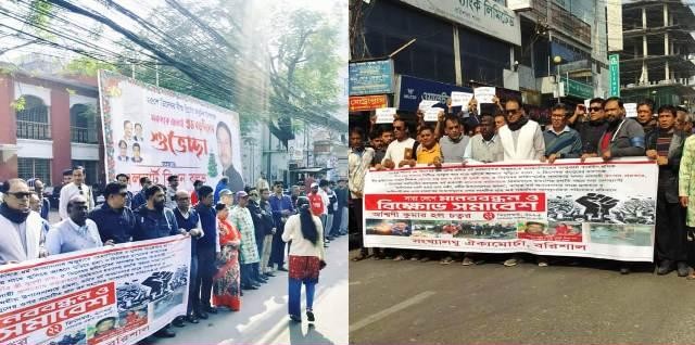 দীপু চন্দ্র দাসকে বর্বরোচিত হত্যাকাণ্ডের প্রতিবাদে বরিশালে মানববন্ধন ও বিক্ষোভ