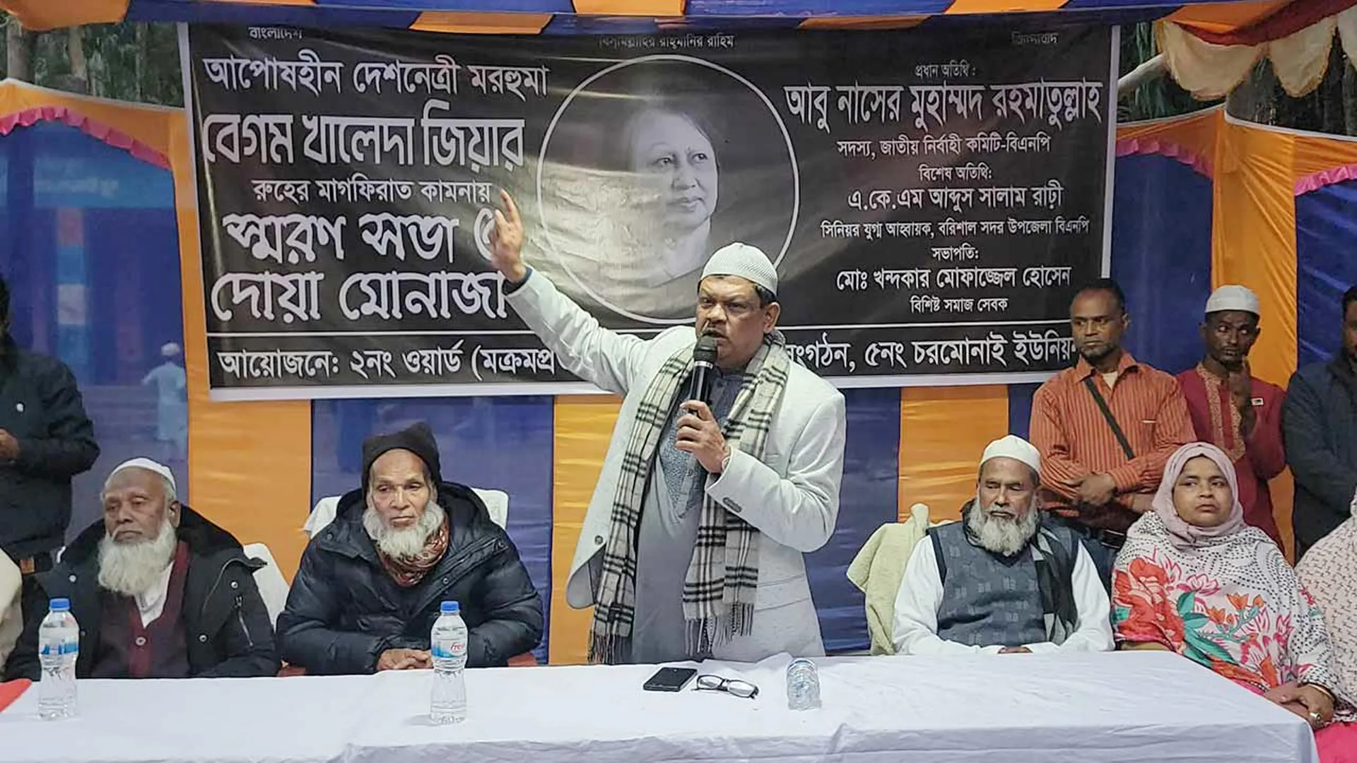বৃহস্পতিবার (৮ জানুয়ারি) বরিশাল সদর উপজেলার ৫ নম্বর চরমোনাই ইউনিয়নের ২ নম্বর ওয়ার্ডের মক্রমপ্রতাপ এলাকায় বিএনপি ও অঙ্গ-সহযোগী সংগঠনের উদ্যোগে খালেদা জিয়ার রুহের মাগফেরাত কামনায় আয়োজিত স্মরণসভা ও দোয়া-মোনাজাতে প্রধান অতিথির বক্তব্যে তিনি এসব কথা বলেন।