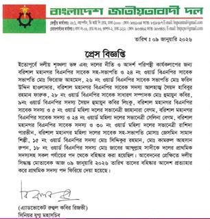 স্বপদে ফিরলেন বরিশাল মহানগর বিএনপির বহিষ্কৃত ১২ নেতা-নেত্রী