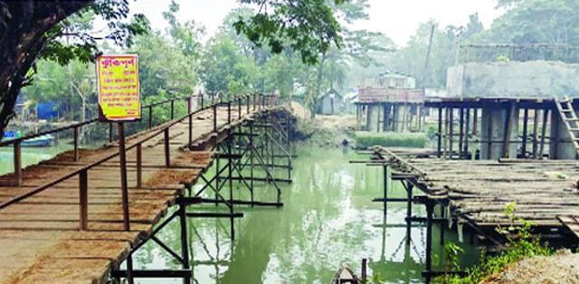 ঝালকাঠির কাঁঠালিয়া উপজেলার আমুয়া হাসপাতালের সাথে সংযোগকারী ধোপার নদীর ওপর নির্মাণাধীন সেতুর কাজ দীর্ঘ দুই বছরেও শেষ হয়নি। কাজ বন্ধ থাকায় উপজেলার হাজারো মানুষকে চরম দুর্ভোগ পোহাতে হচ্ছে। জীবনের ঝুঁকি নিয়েই রোগীসহ সাধারণ মানুষ প্রতিদিন নড়বড়ে ও ভাঙাচোরা অস্থায়ী কাঠের সেতু দিয়ে চলাচল করছেন। এতে সবচেয়ে বেশি ঝুঁকিতে পড়েছে শিক্ষার্থী, নারী, শিশু ও হাসপাতালে আসা রোগীরা। স্থানীয়দের দাবি, দ্রুত নির্মাণকাজ শেষ না হলে ঝুঁকিপূর্ণ কাঠের সেতু যে কোনো সময় বড় দুর্ঘটনার কারণ হতে পারে।
