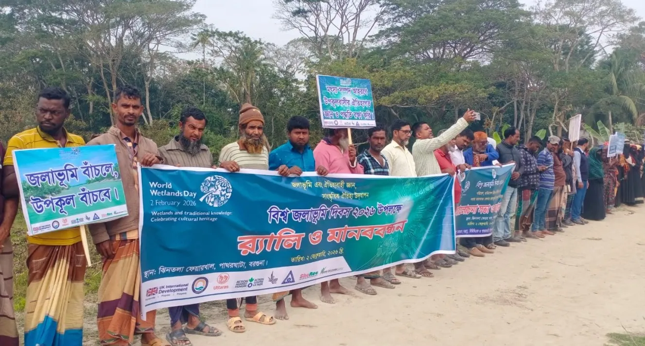 বিশ্ব জলাভূমি দিবস: পাথরঘাটায় জলাভূমি রক্ষায় মানববন্ধন