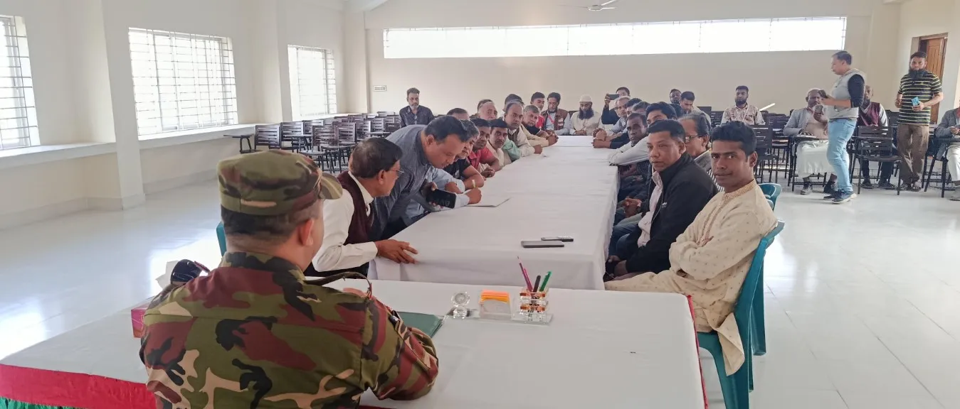 সভায় হিজলা সেনাবাহিনী ক্যাম্পে ৪১ বীর অধিনায়ক মেজর কাজী জাহিদুল ইসলাম হিন্দু সম্প্রদায়ের নেতৃবৃন্দের সাথে আগামী ১৩ তম জাতীয় সংসদ নির্বাচনের সার্বিক পরিস্থিতি নিয়ে আলোচনা করেন।