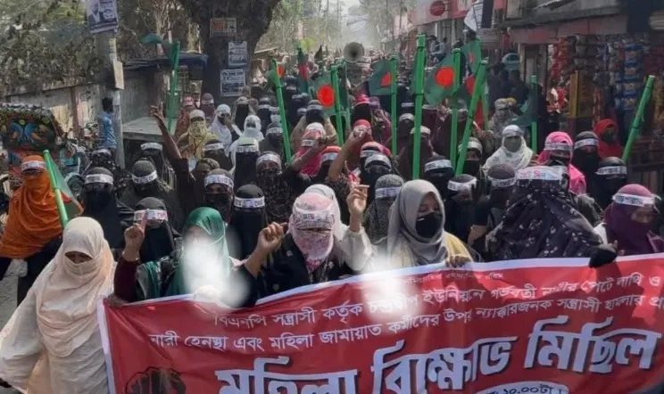 গর্ভবতীর ওপর হামলার প্রতিবাদে জামায়াতের নারী কর্মীদের বিশাল বিক্ষোভ