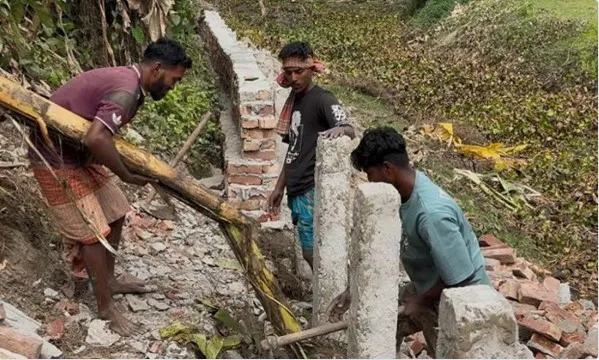 সড়ক নির্মাণে রডের পরিবর্তে ব্যবহার হচ্ছে কলাগাছ!