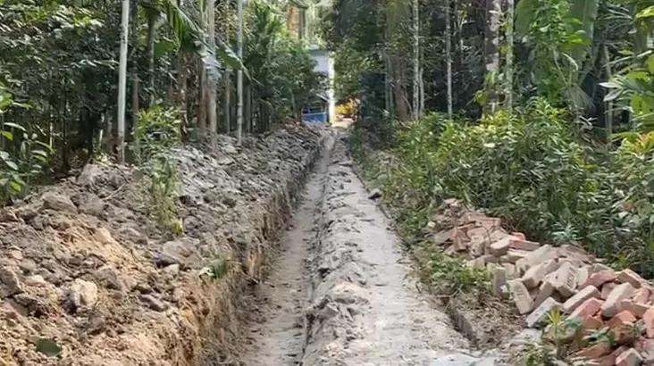সরকারি রাস্তার ইট তুলে ফেললেন সেচ প্রকল্পের ঠিকাদার