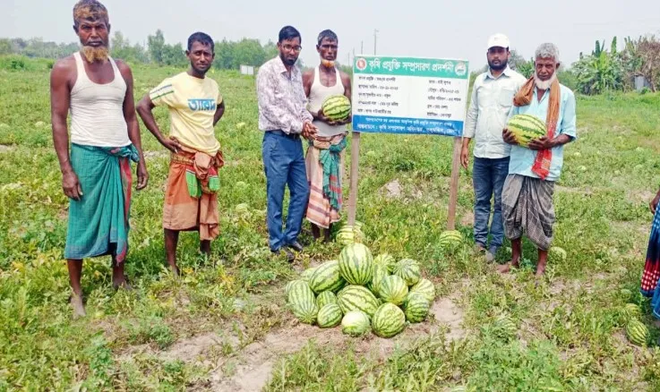তজুমদ্দিন পতিত জমিতে তরমুজের বাম্পার ফলন, লাভের মুখ দেখছেন কৃষকরা