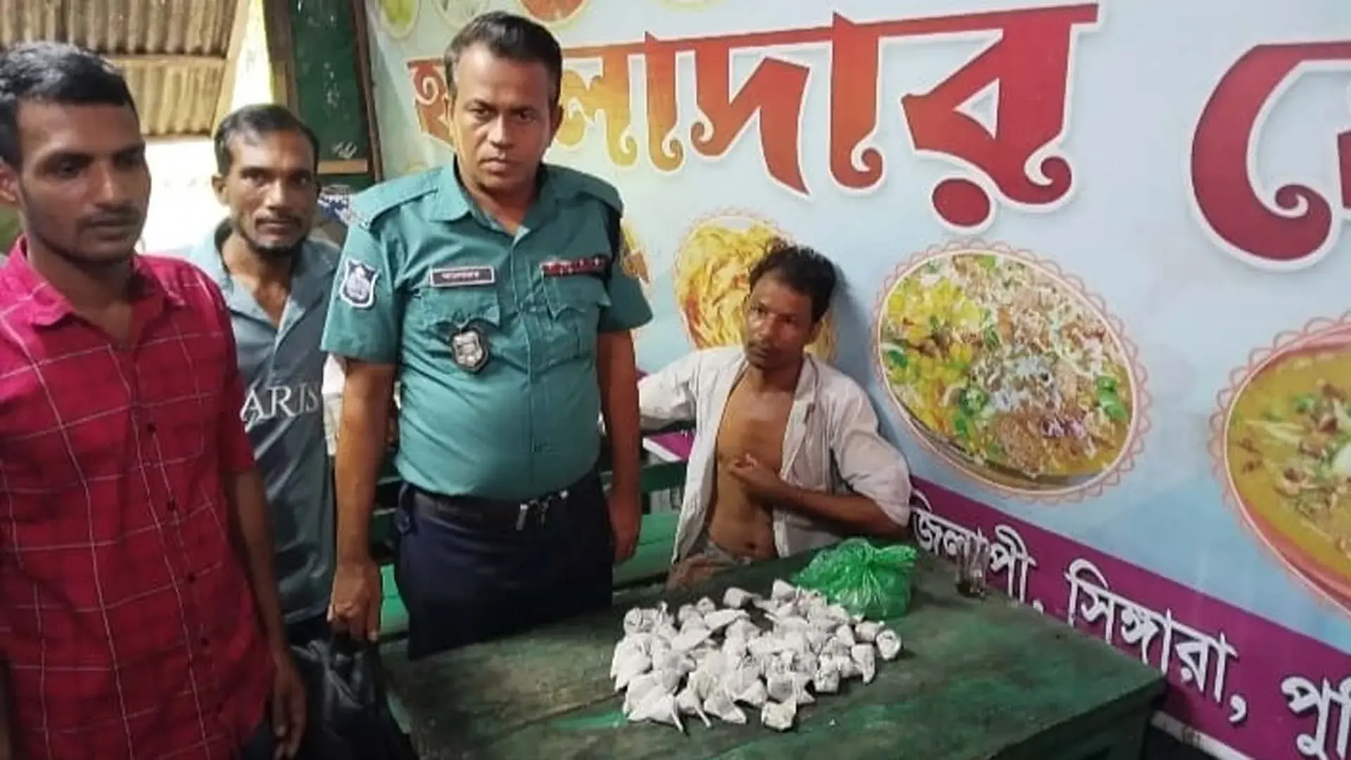 স্থানীয় ও পুলিশ সূত্রে জানা যায়, ১ নং রায়পাশা-কড়াপুর ইউনিয়ন পরিষদের ৩ নং ওয়ার্ডের পাচগাঁও বাজারের মৃত শহীদের ছেলে জসিমকে ৬০ পুড়িয়া গাঁজাসহ আটক করে স্থানীয় জনতা। এই বিষয়টি পরক্ষণে বিএনপি নেতা আজাদী হাসানাত ফিরোজকে অবহিত করা হলে তিনি ঘটনাস্থলে ছুটে যান। এবং মাদকবিক্রেতা যুবককে জনরোষ থেকে উদ্ধার করে পুলিশের হাতে তুলে দেন তিনি।