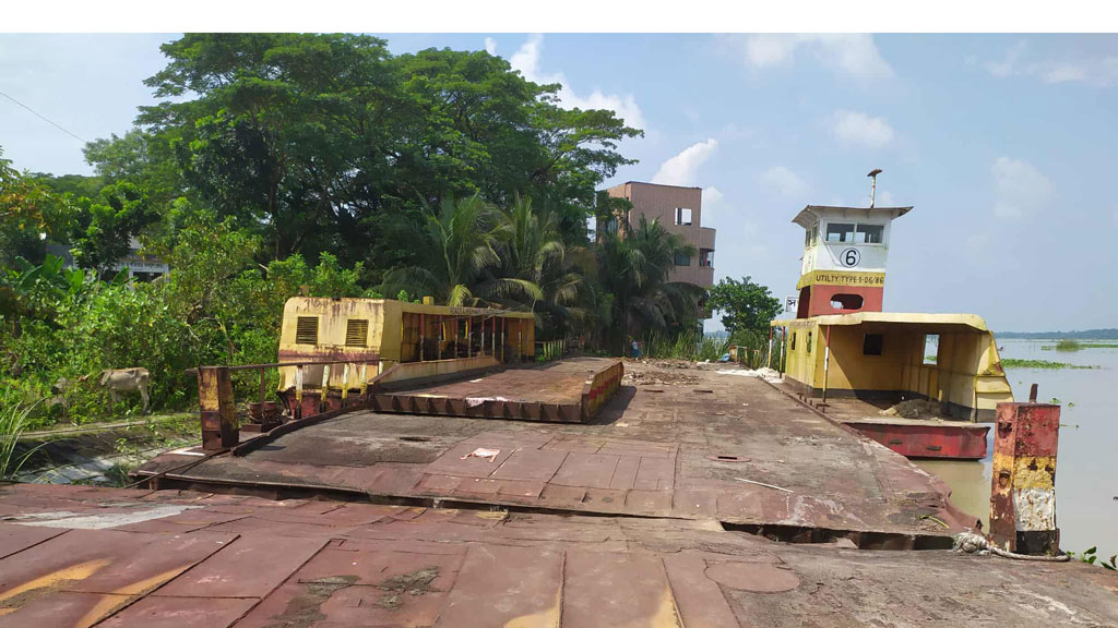 রোদ-বৃষ্টি, পানি ও কাদার আস্তরণে এখন অচল দুটি ফেরি। দীর্ঘদিন ধরে শ্রমিক-কর্মচারীদের পদচারণ না থাকায় ও ফেরিটি চলাচল না করায় পুরো এলাকা আগাছায় ছেয়ে গেছে। এই অবস্থায় খোলা আকাশের নিচে পড়ে থাকা কোটি টাকার নৌযান দুটি নষ্ট হয়ে যাচ্ছে।